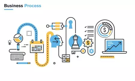 企業是由營業、研發、採購、生產、倉儲、配送等核心流程及人力資源、資訊、策略規劃等支援流程而組成。從下圖二:流程的基本模式顯示,企業需要投入人員、設備、物料、資金、技術等各項的資源,透過各項流程有附加價值的活動,為企業產出產品、服務、資訊等各項成果,達成創造企業獲利的目的。